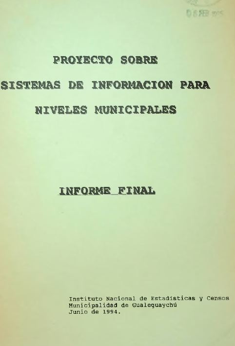 Proyecto sobre sistemas de información para niveles municipales : Municipalidad de Gualeguaychú. Informe final