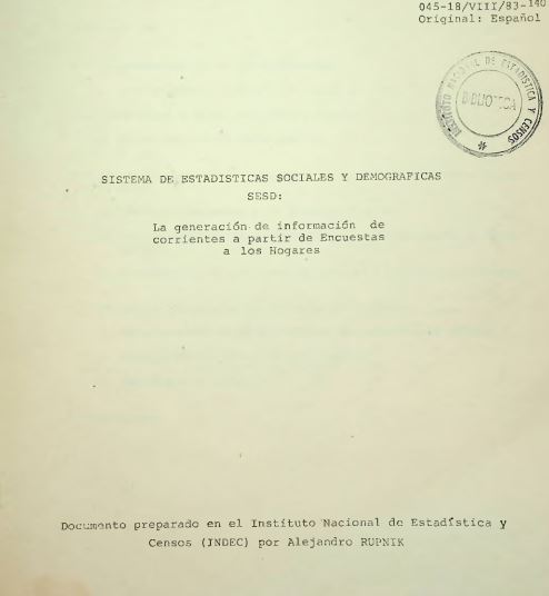 Sistema de estadísticas sociales y demográficas SESD : la generación de información de corrientes a partir de Encuestas a los Hogares