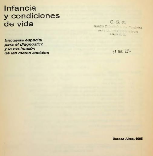 Infancia y condiciones de vida : encuesta especial para el diagnóstico y la evaluación de las metas sociales